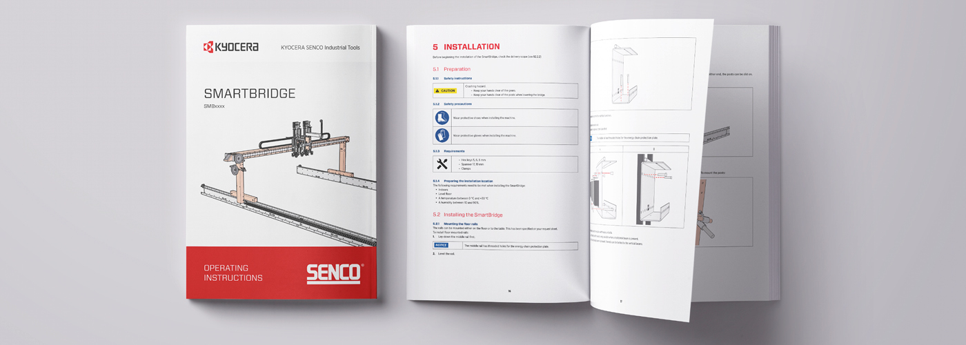 Die Vision von Kyocera Senco ist es, alle Handbücher ausschließlich online zu veröffentlichen. Aufgrund von Gesetzen und Vorschriften ist dies derzeit nicht möglich. Um jedoch auf die sich ändernden Vorschriften bestmöglich vorbereitet zu sein, wollte Kyocera sowohl gedruckte als auch Online-Varianten für seine Handbücher, und zwar in mehreren europäischen Sprachen. Eine Herausforderung, die glücklicherweise perfekt zu Manualise passte.
