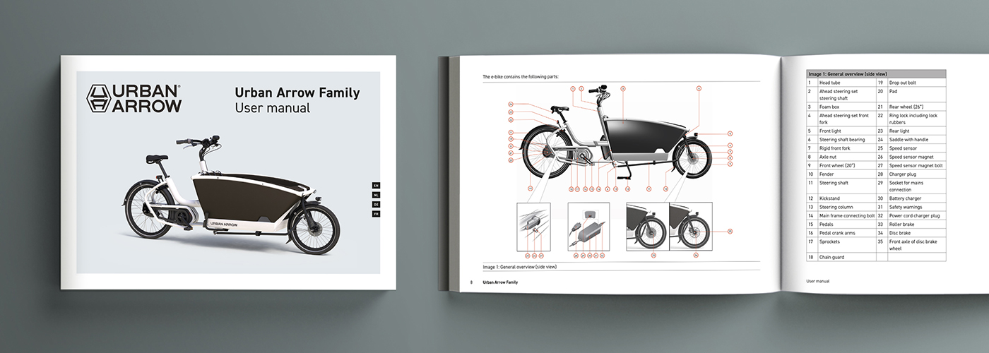 Om de diverse doelgroepen en markten te kunnen bedienen liep Urban Arrow al snel aan tegen een keerzijde van het succes: de documentatie. Waar in het begin één enkele handleiding in twee talen volstond, is de hoeveelheid documenten tegenwoordig een veelvoud. Dat brengt natuurlijk de nodige uitdagingen met zich mee. Tijd om een specialist in te schakelen. Het contact met Manualise was snel gelegd.